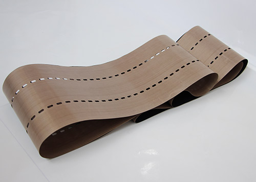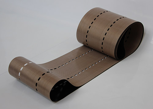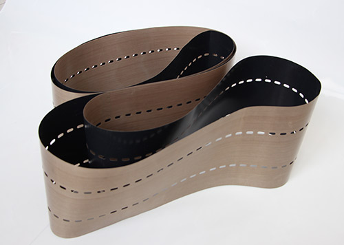 美澳串焊機皮帶采用高強度玻璃纖維紗或凱芙拉(芳綸)經圓織設備編織筒狀織物,采用工藝技術涂覆特氟龍樹脂(PTFE)制成的。它克服以往輸送帶接口連接處易斷裂的現象。連接處周長不等而造成走行穩定性差、跑偏現象。無縫皮帶運轉壽命比任何接法的特氟龍輸送帶壽命都要長3倍以上。