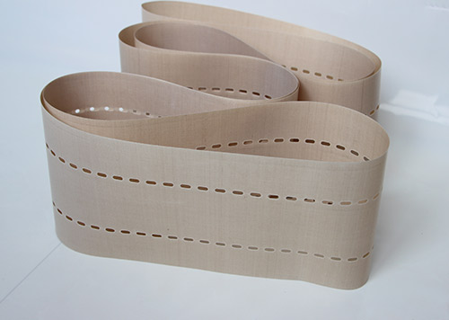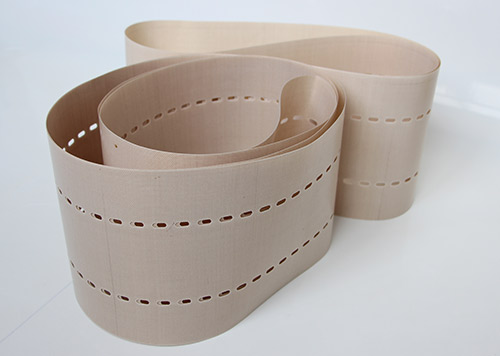 美澳串焊機皮帶采用高強度玻璃纖維紗或凱芙拉(芳綸)經圓織設備編織筒狀織物,采用工藝技術涂覆特氟龍樹脂(PTFE)制成的。它克服以往輸送帶接口連接處易斷裂的現象。連接處周長不等而造成走行穩定性差、跑偏現象。無縫皮帶運轉壽命比任何接法的特氟龍輸送帶壽命都要長3倍以上。